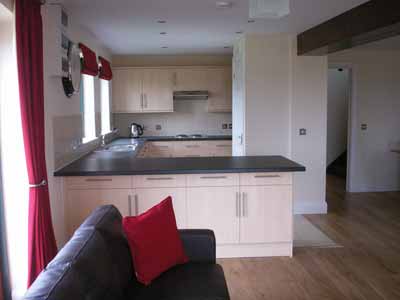 Ground Floor: Entrance hall, Cloakroom/WC, Very comfortable open plan sitting room with well equipped kitchen area and doors to gardens, Double bedroom.